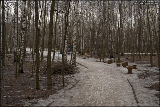 Уплывают скамейки по лужам замёрзшего парка